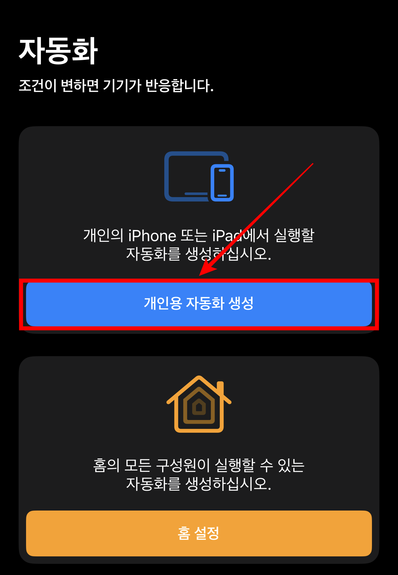 - 하단 자동화 중앙 "개인용 자동화 생성" 누르기