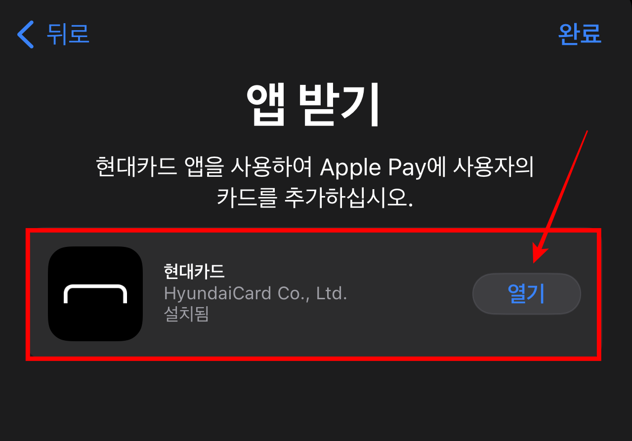 1. 앱 받기(현대카드 설치, 이용자가 카드사 어플을 통해 카드 추가하는 방법)