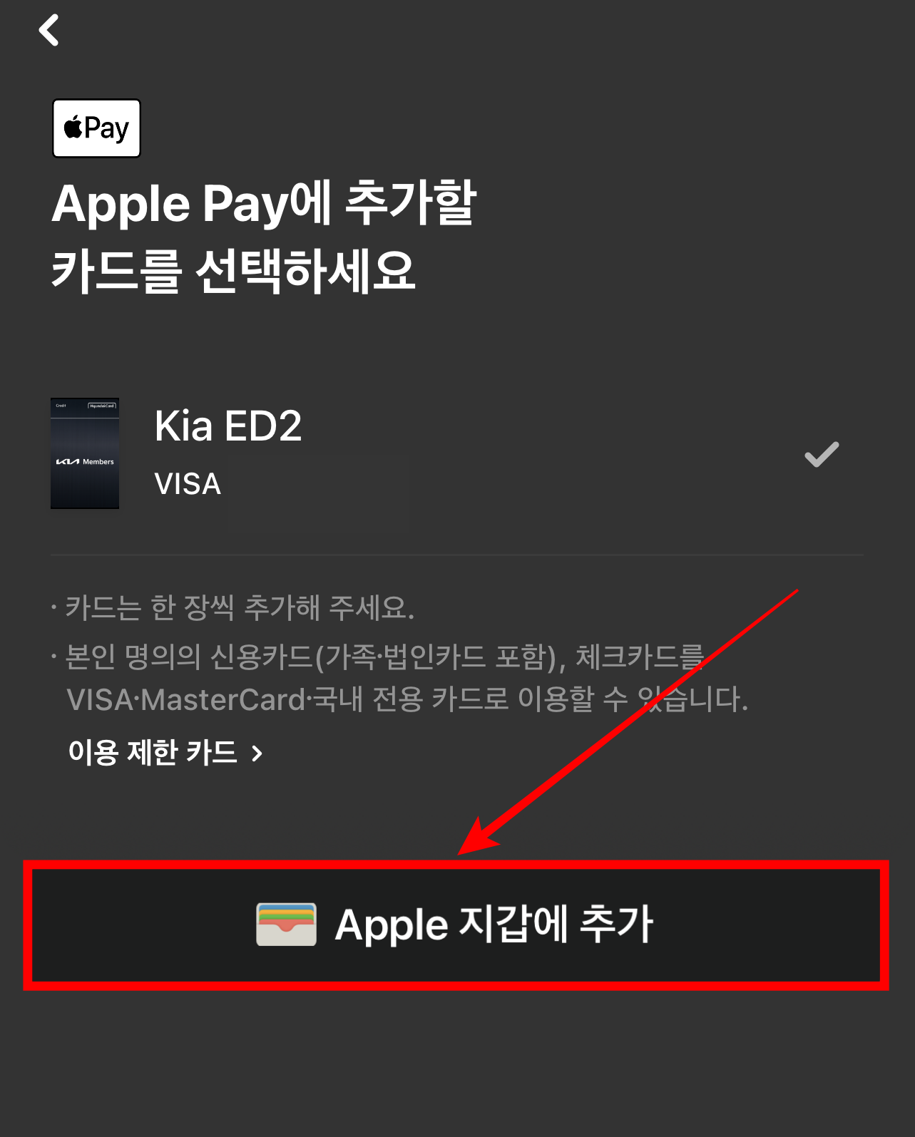 - 지갑 추가 항목에서 "체크카드 또는 신용카드" 항목 선택
