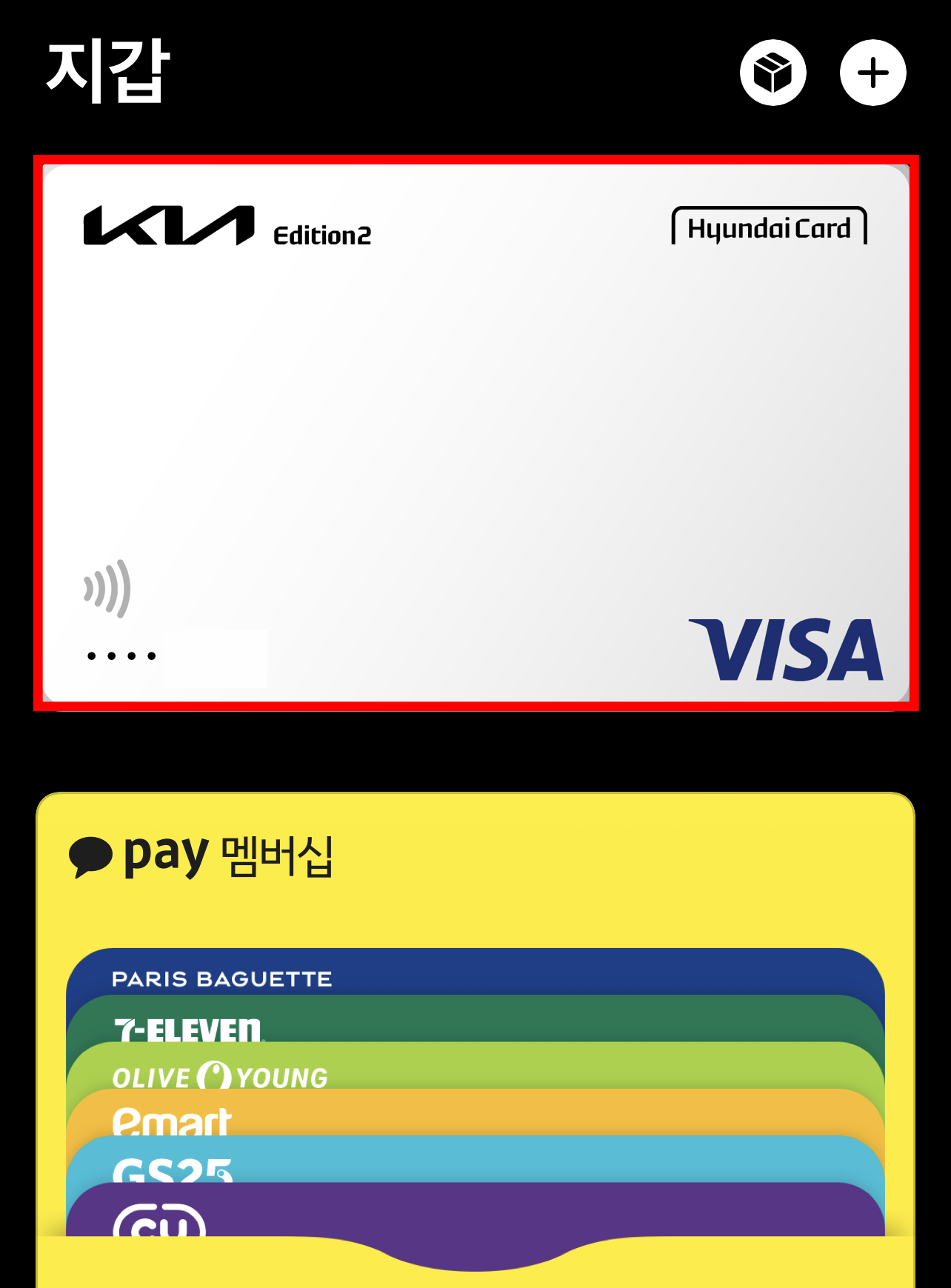 - 지갑 앱에 들어가서 등록한 현대카드 있는지 확인