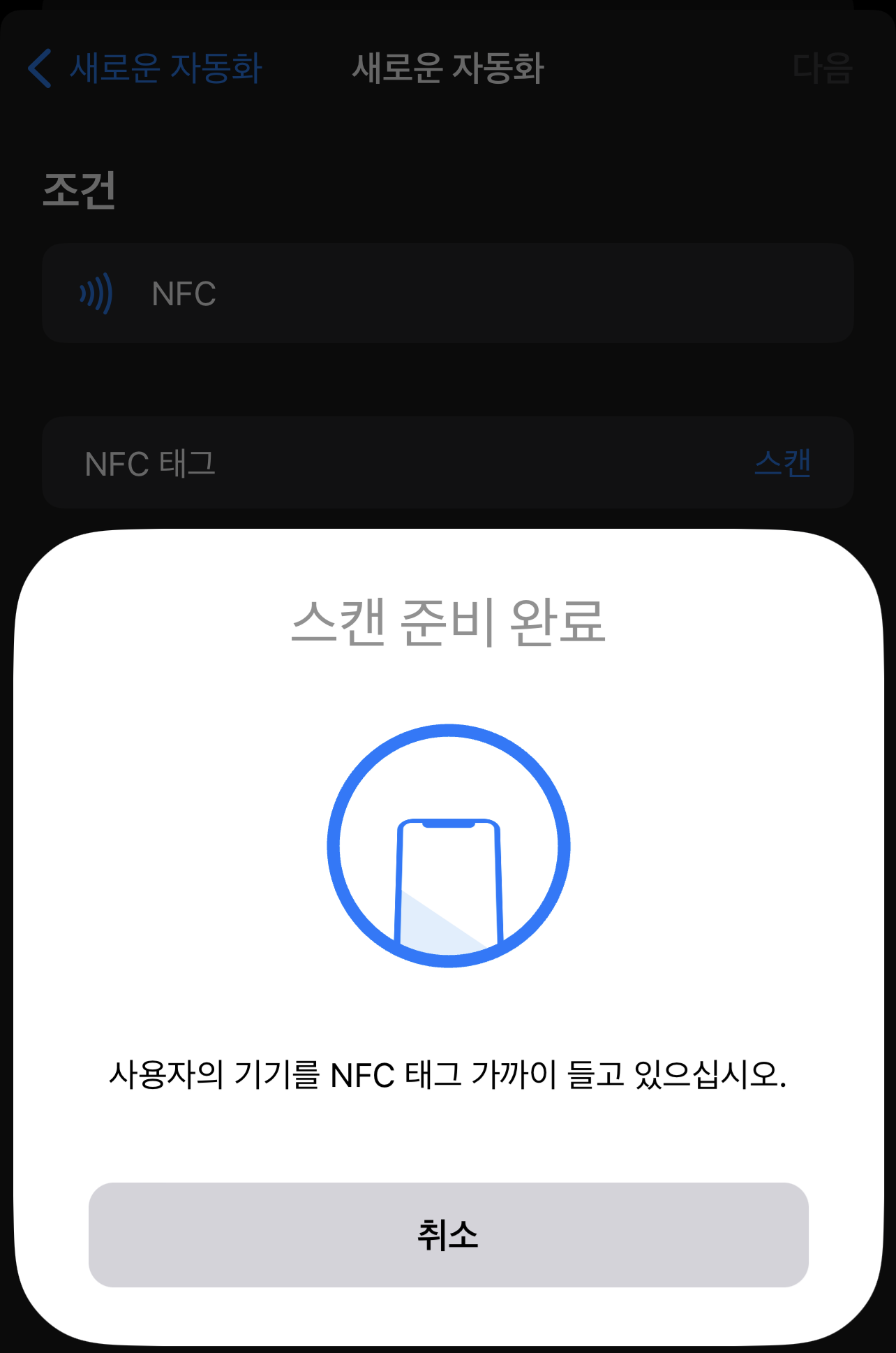 위 스캔 준비 완료가 확인되었다면, 이제 NFC가 활성화되었습니다.