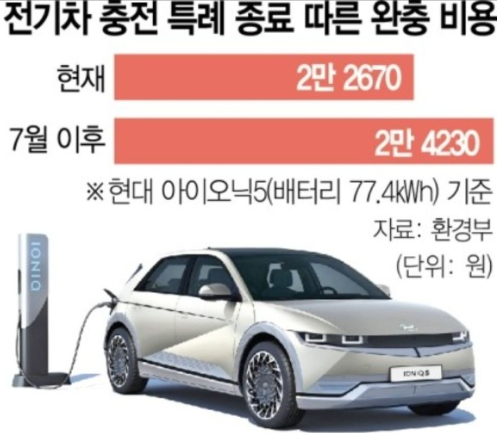 "전기차 충전요금 특례 할인, 2022.07월부터 7% 인상"